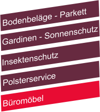 Über 60 Jahre Erfahrung in der Raumgestaltung garantieren Ihnen ein Höchstmaß an Perfektion bei der Konzeption und Umsetzung Ihres Projekts. Von Fußbodenarbeiten und edlen Parkettarbeiten bis zur Anfertigung traumhafter Vorhänge, Sonnenschutz und Polsterarbeiten liefern wir auch Büromöbel nach Maß. Selbstverleger finden in unserem großen Lagerangebot erstklassige Fachmarktqualität zu fairen Preisen.